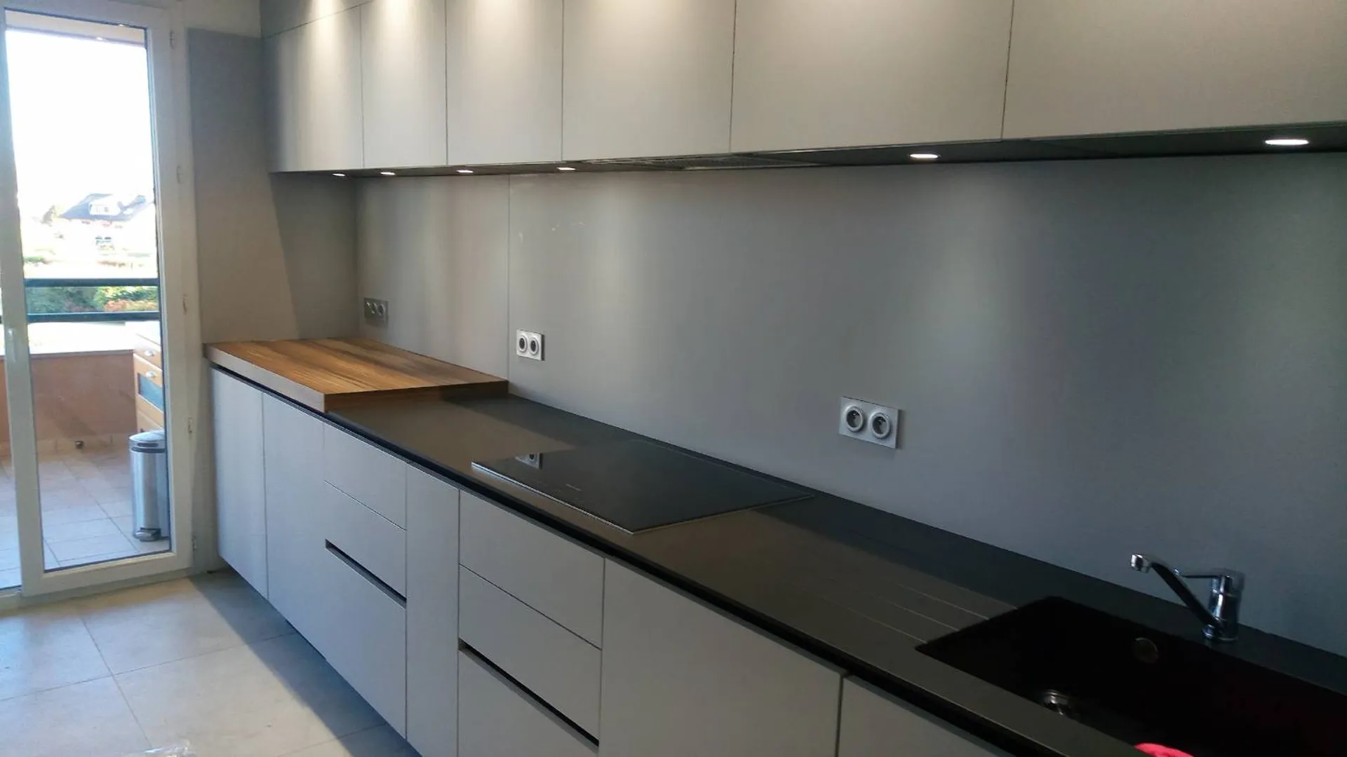 Réalisation d'une cuisine sur mesure à Villeurbanne tout en fenix NTM de chez Rastelli cucine.