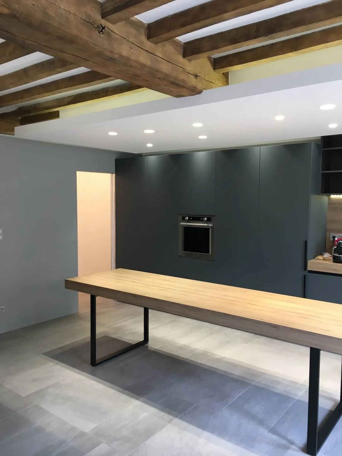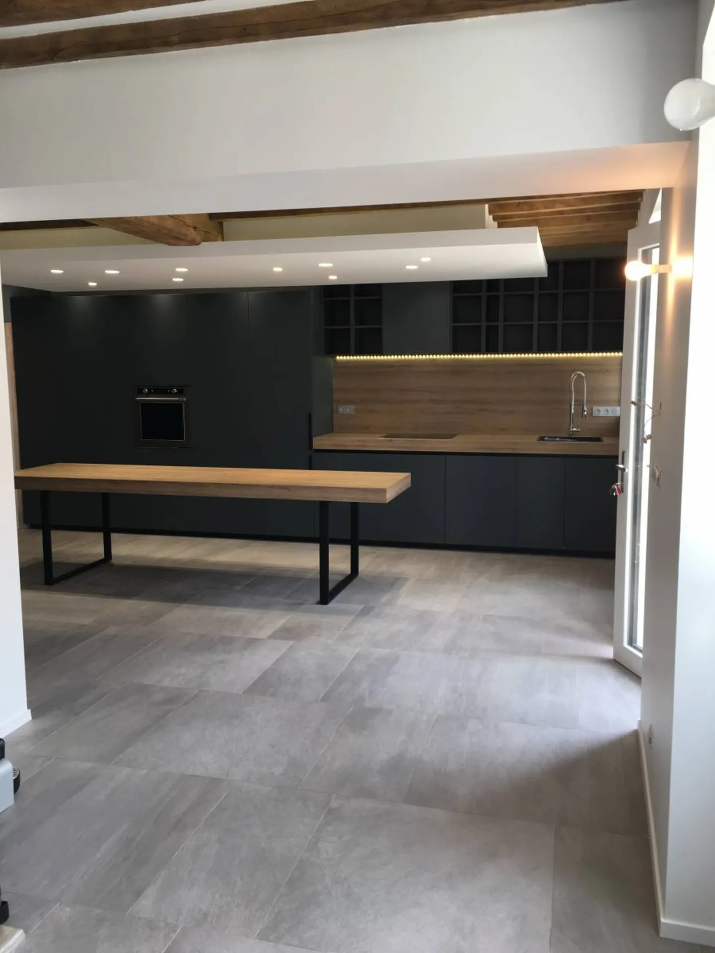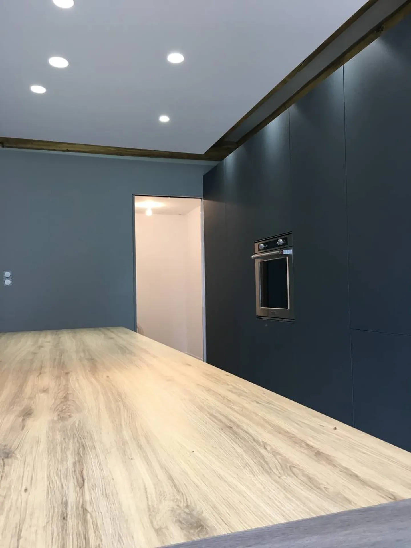 Cuisine Megève fenix et plan de travail en bois avec ilot central
