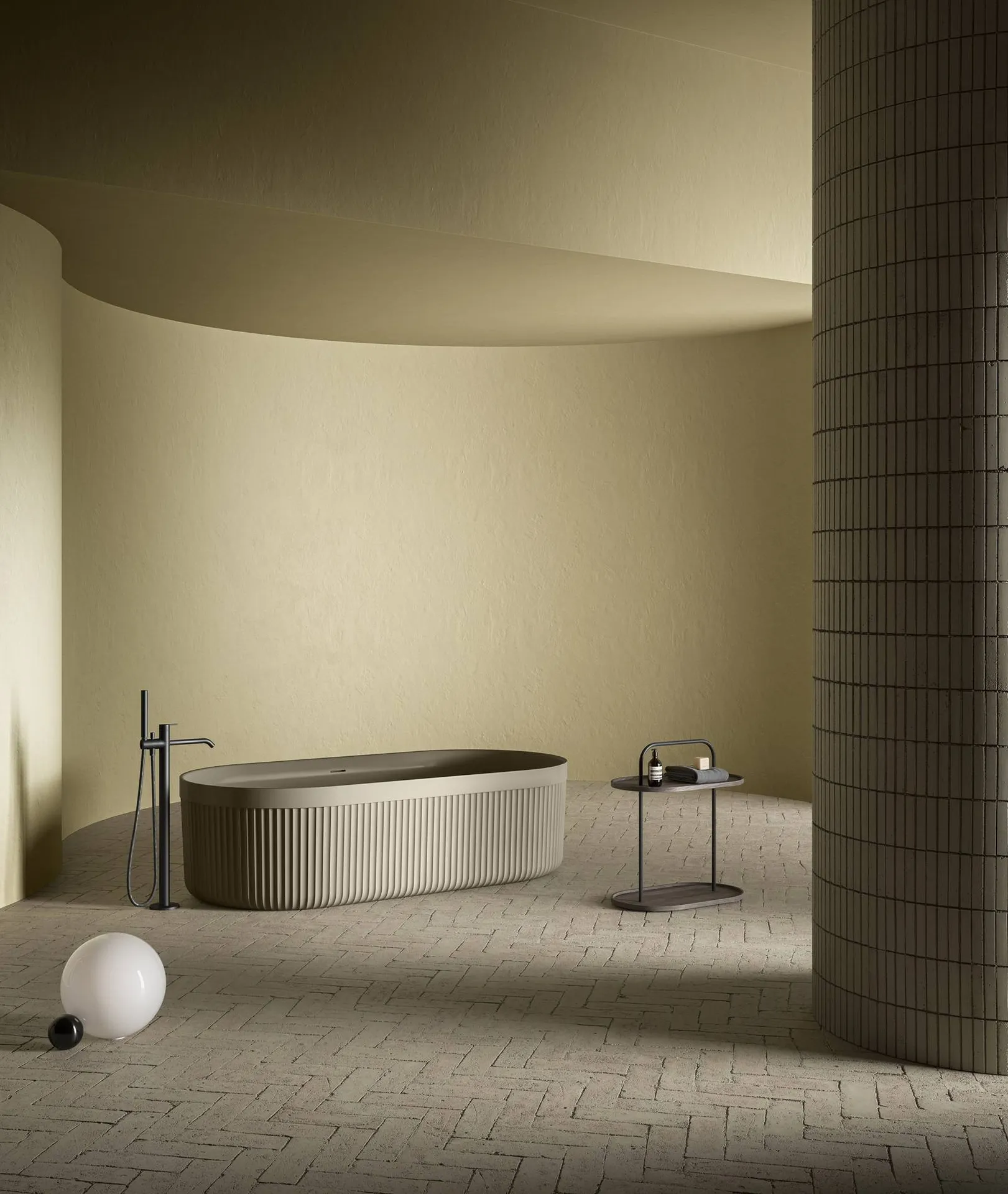Baignoires teintées dans la masse, meubles raffinés en bois associés à la pierre naturelle, formes audacieuses et reconnaissables, palettes de couleurs exclusives développées en interne… chaque création reflète la philosophie de la marque : allier esthétique intemporelle et qualité irréprochable.