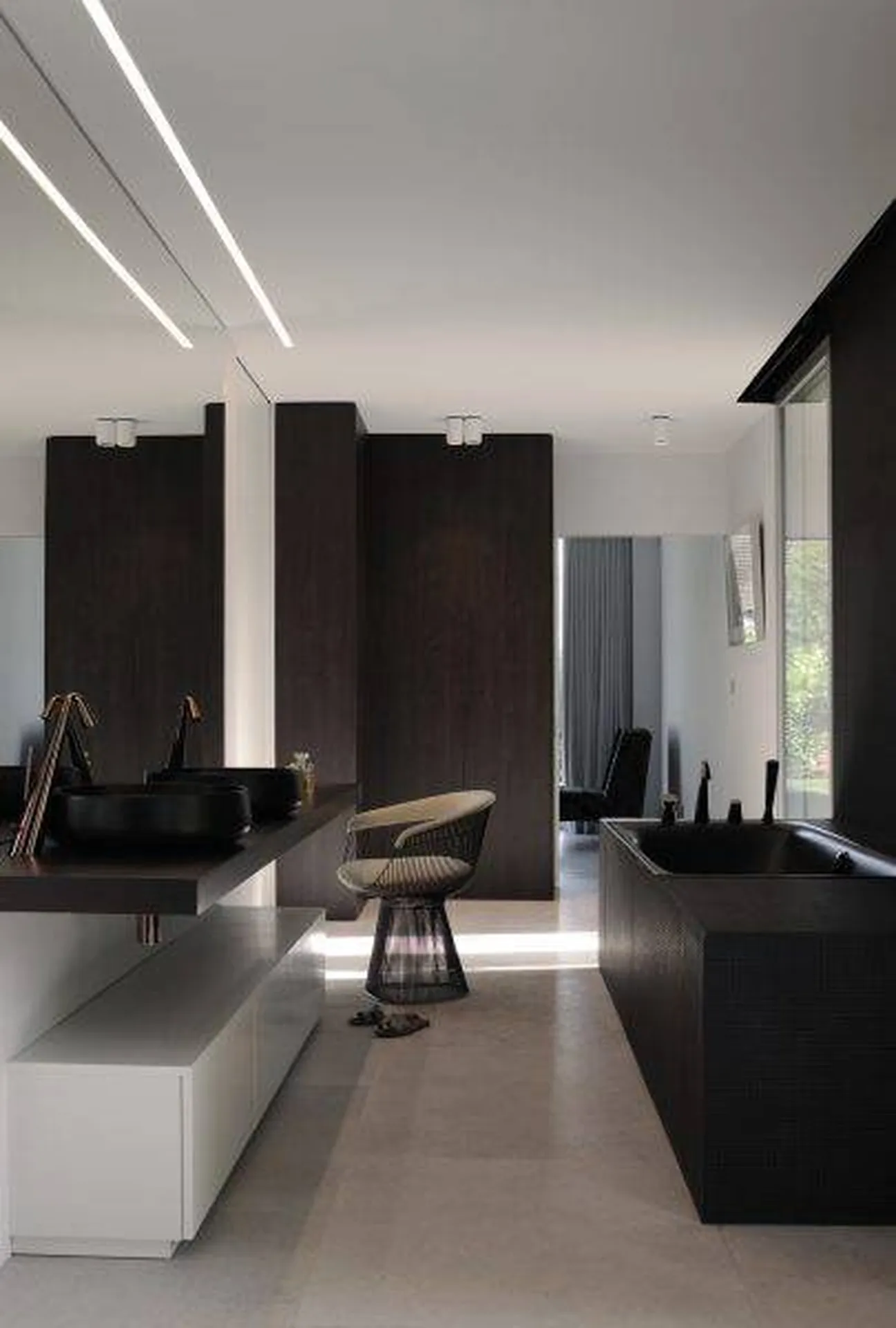 "Intégré à une architecture radicale, cet agencement intérieur de maison participe au jeu d’interactions de l’architecture. Le design intérieur sophistiqué et graphique répond à l’architecture originale de la villa." -Sébastien Belle